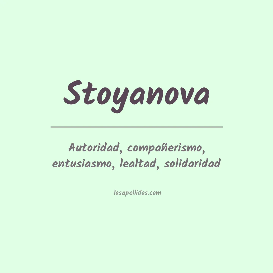 Stoyanova es un apellido de origen búlgaro. Se cree que deriva de la palabra "stoy" que significa "quedarse", por lo tan...