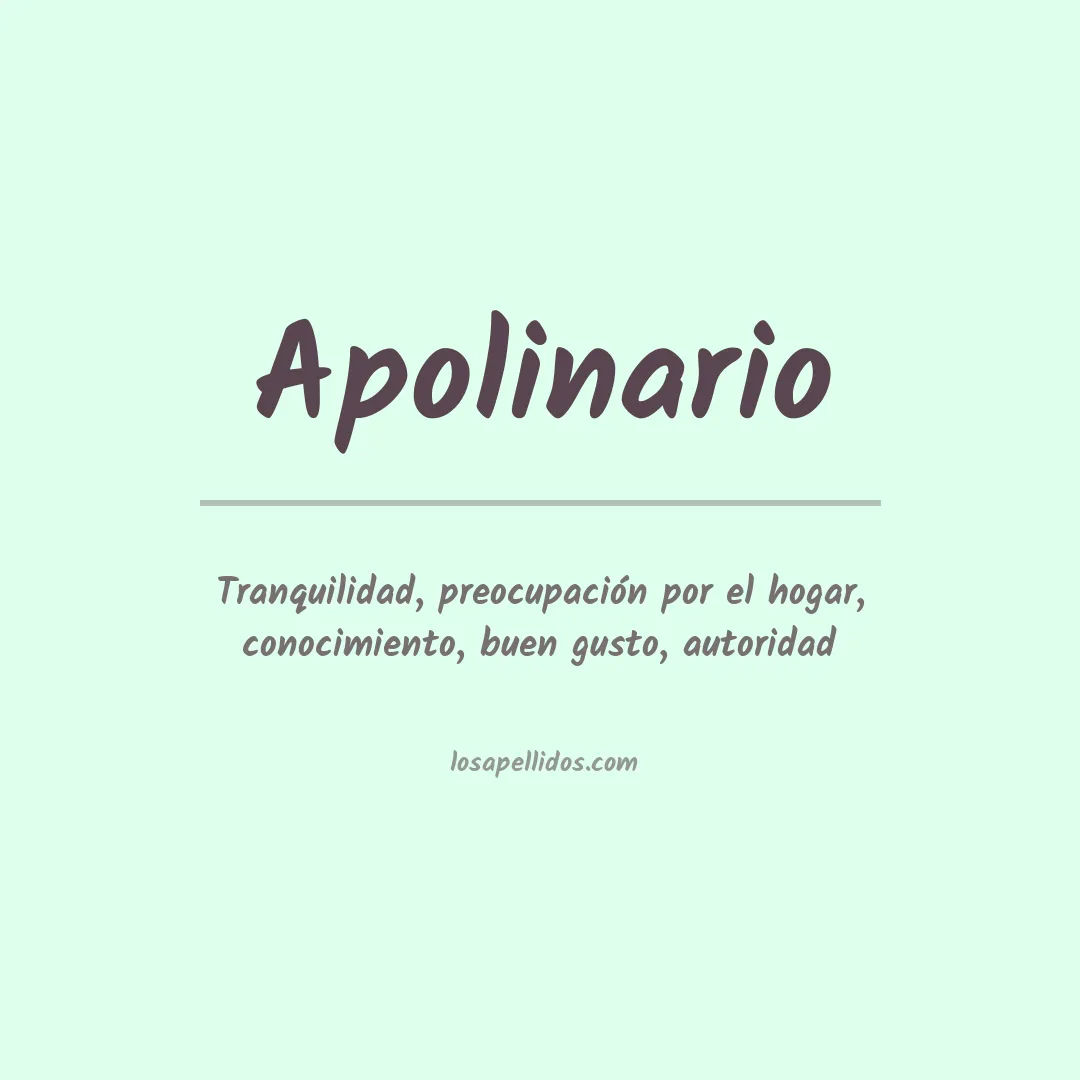 El apellido Apolinario proviene del nombre latino Apollinaris, que deriva de la palabra latina "Apollo", que se refiere al dios griego del sol, de la poesía y de las artes. Es un apellido común en la cultura hispana, y se le asigna a aquellos que tienen una fuerte conexión con el arte y la cultura. También puede significar "el que está dotado ...por Apolo".