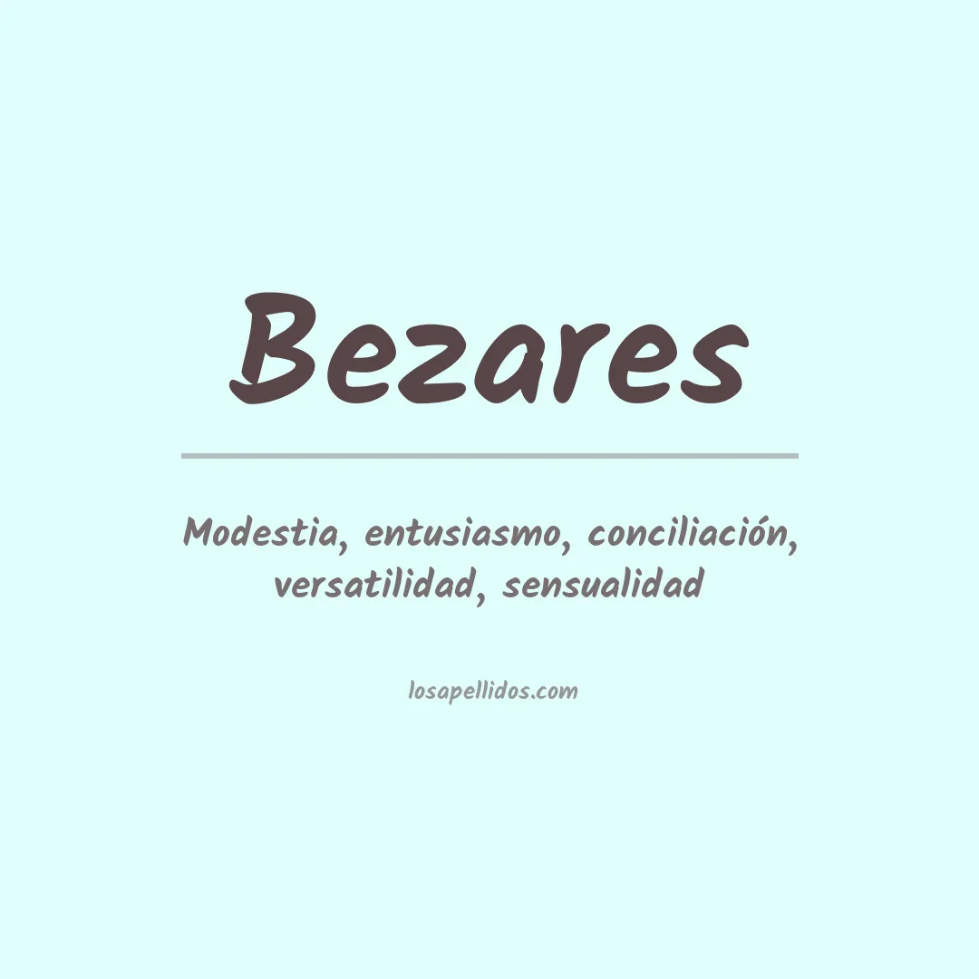 Español: nombre habitacional de cualquiera de los dos lugares llamados Bezares en Burgos y La Rioja.