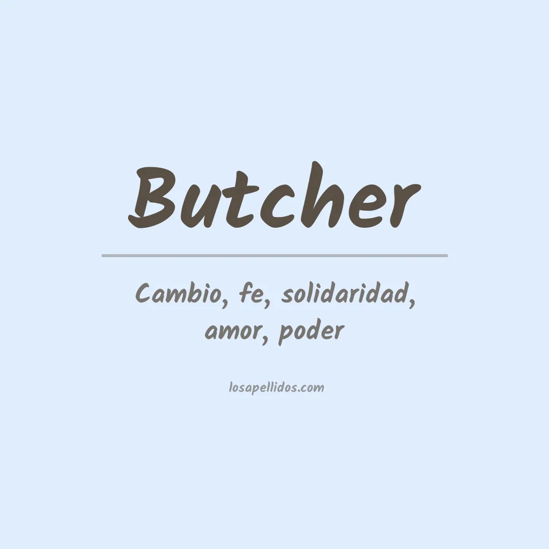 El apellido Butcher significa "carnicero" o "matarife". Se originó como un apodo para alguien que trabajaba como carnicero. También puede derivarse del término inglés antiguo "boucher", que significa "cortar".