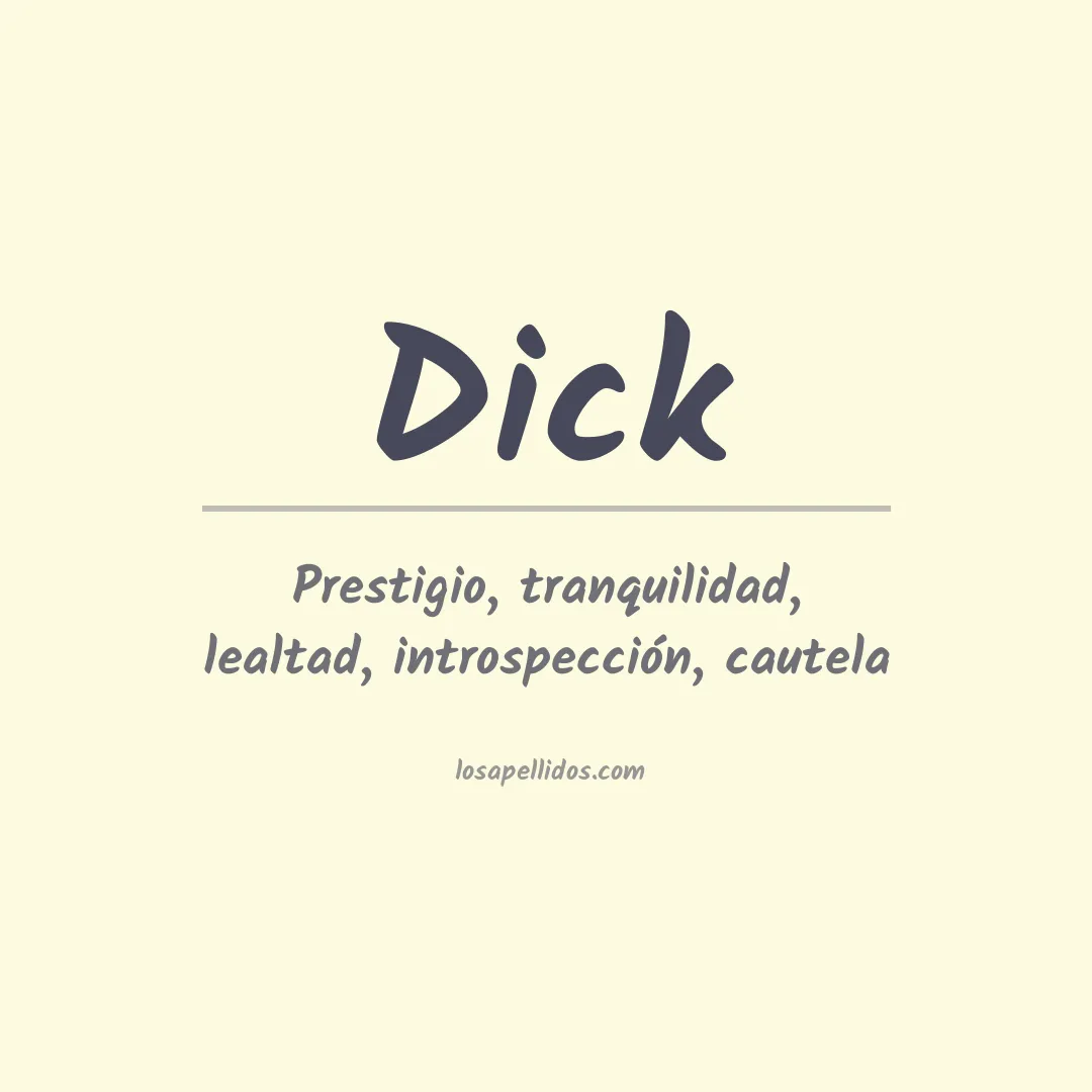 El apellido Dick es una variación del nombre alemán Dietrich, originario del nombre antiguo Teodoric. El significado literal de este nombre es "poderoso príncipe". El apellido Dick también puede ser una variación de la palabra inglesa antigua "dic", que significa "dicho".
