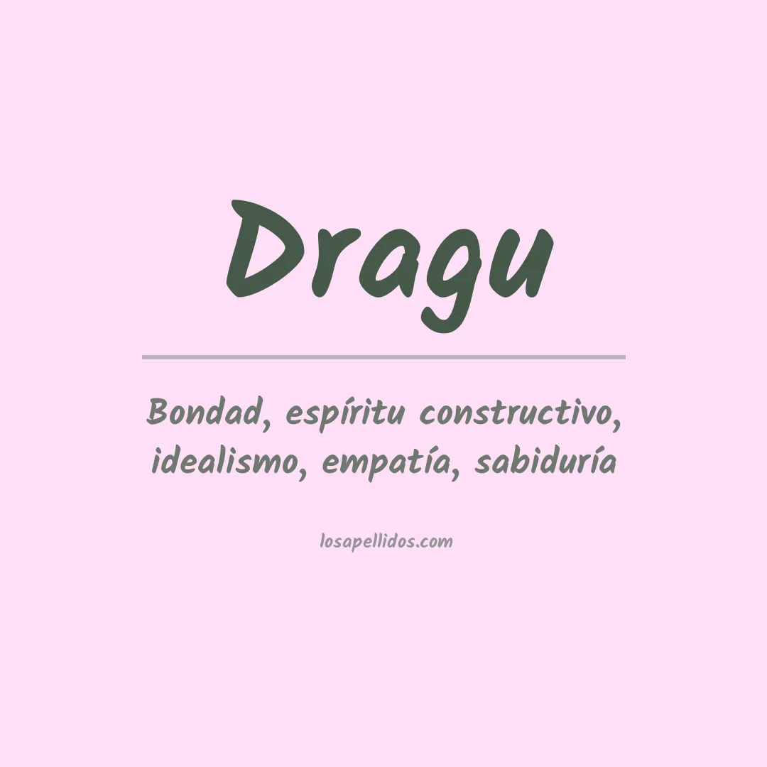 El apellido Dragú es una versión moderna del apellido italiano Draghi, que significa "dragones". El nombre se originó como un apodo para alguien que se consideraba valiente o temerario, pero también puede haber derivado de un oficio relacionado con el cuidado de dragones.