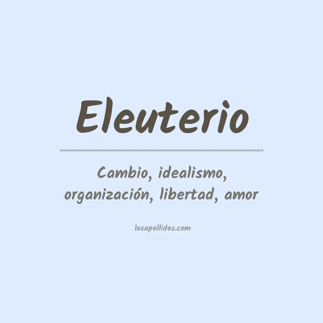 El apellido Eleuterio proviene de la palabra latina eleutheros, que significa 'libre'. Es un nombre común en España, particularmente en el norte del país. Representa la libertad, la independencia y la liberación. Está asociado con los conceptos de autonomía, creatividad y espontaneidad.