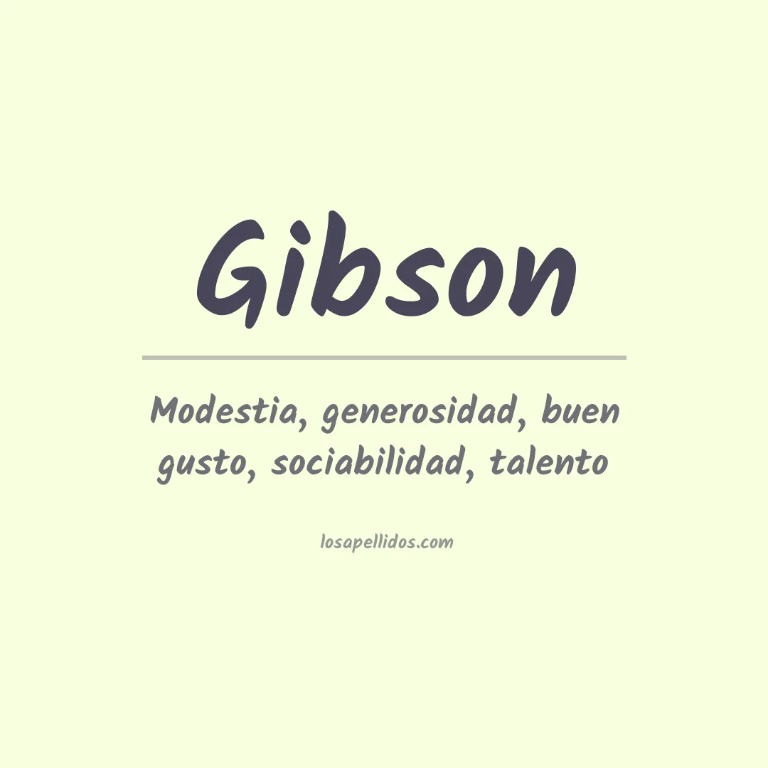 El apellido Gibson proviene del nombre de pila gaelico Gib, que significa "hijo de Gilbert". Esta fue una familia prominente en Escocia durante el Medievo. Como tal, el apellido Gibson se asocia con la antigua tribu escocesa de los Pictos, y se cree que los orígenes de la familia se remontan al siglo Xi. El apellido también puede estar relacionad...o con antiguos clanes escoceses, como los Macgibsons y los Gilbertsons.