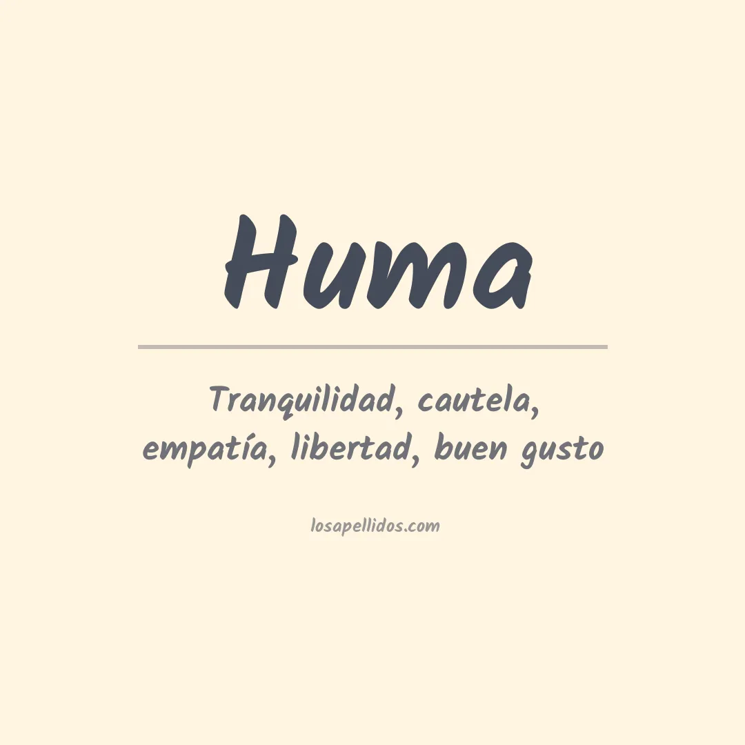 El apellido Huma proviene del nombre medieval Humbert, que significa "guerrero brillante". Puede ser de origen alemán, francés o italiano.