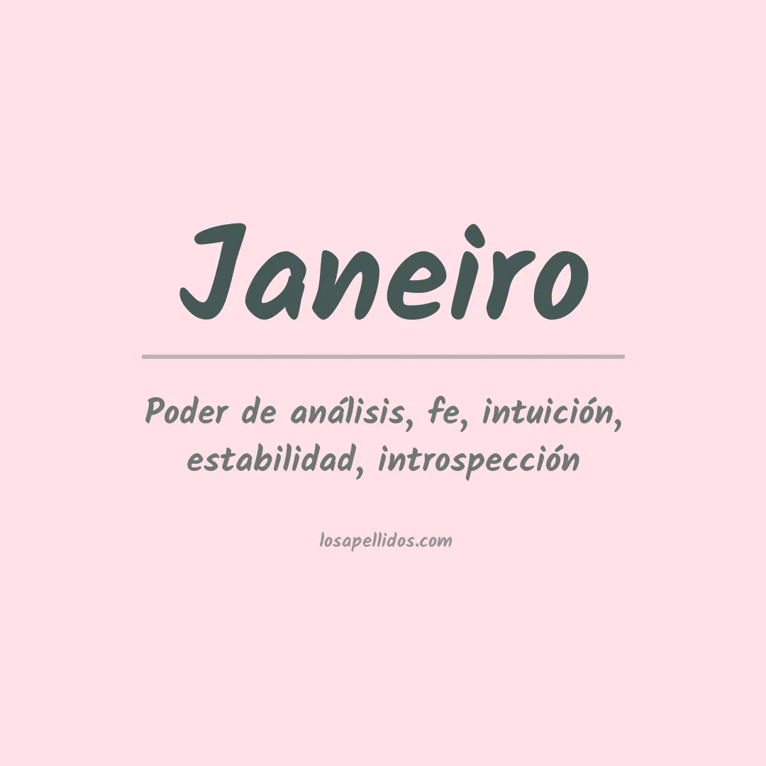 El apellido Janeiro es un topónimo portugués que se originó en la región de Trás-os-Montes, Portugal. El nombre deriva del latín Januarius y significa "enero", el primer mes del año. En algunos casos, también puede ser una variación del nombre propio Juan.