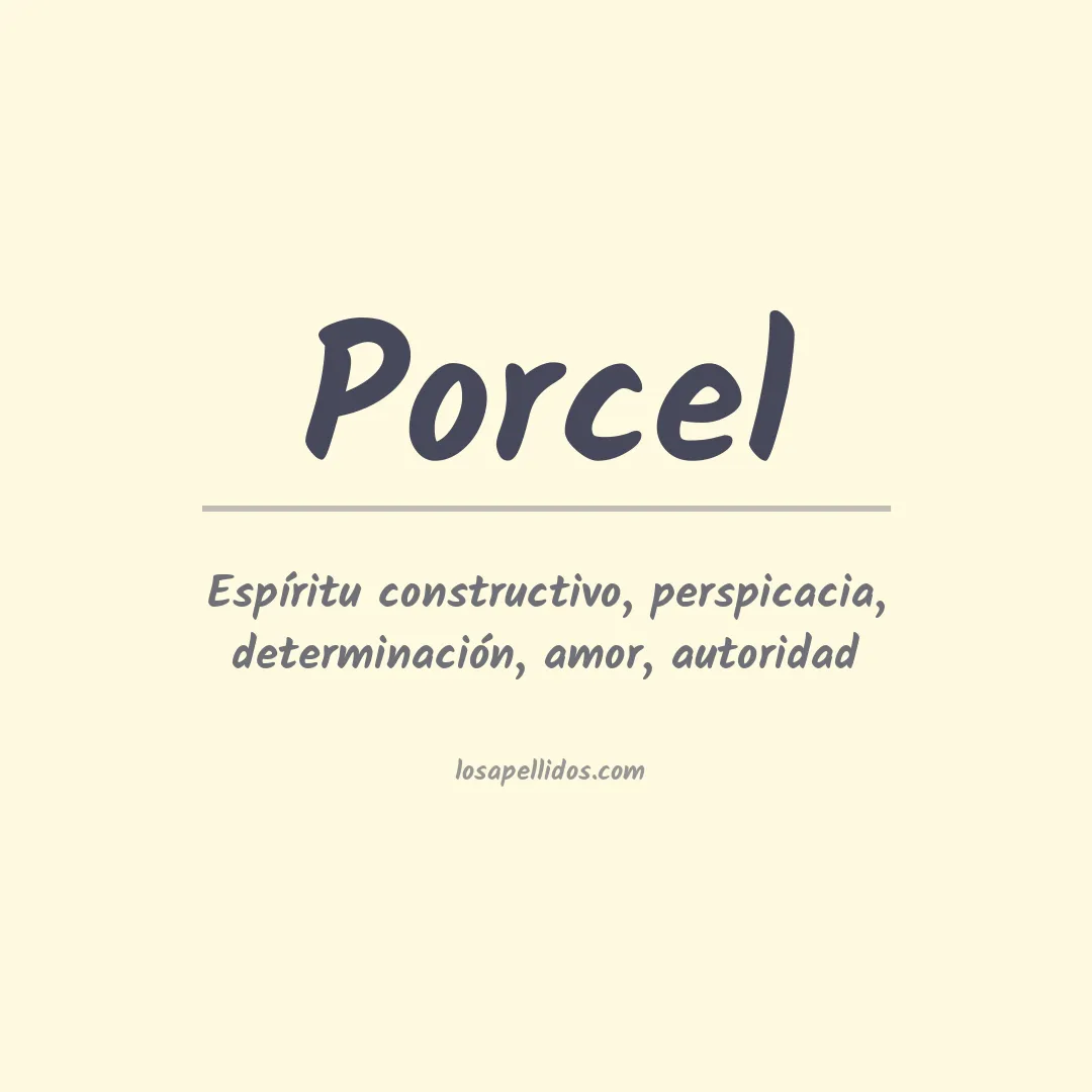 El apellido Porcel es un apellido de origen catalán, que se deriva de la palabra latina porcellus, que significa cerdito. Está relacionado con el oficio y/o profesión de cuidar cerdos.