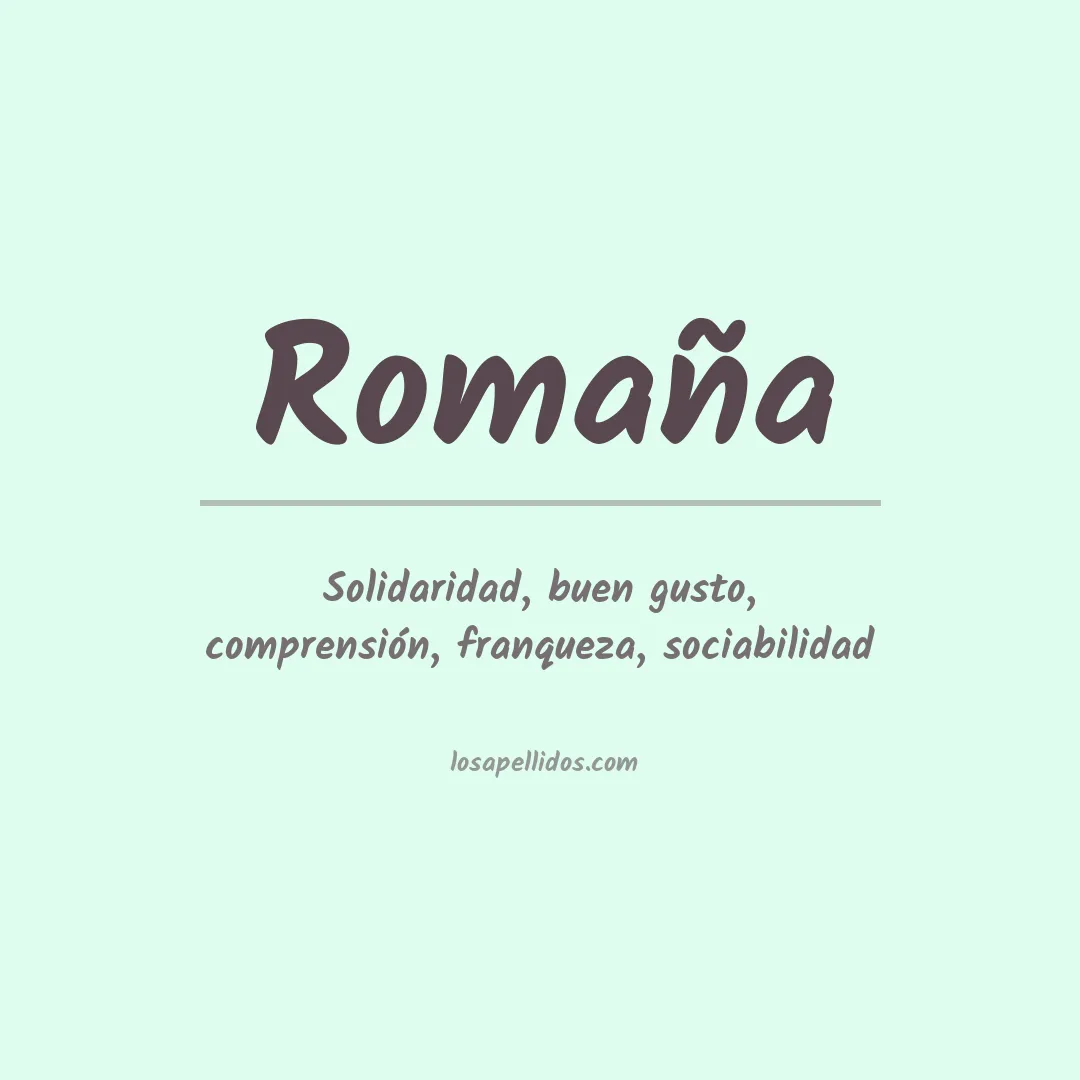 El apellido Romaña es un apellido de origen vasco que significa "el lugar alto". Esto se refiere a un lugar alto y elevado, como una montaña. El apellido también puede indicar que los ancestros de la persona eran originarios de un pueblo o ciudad conocido como Romaña.