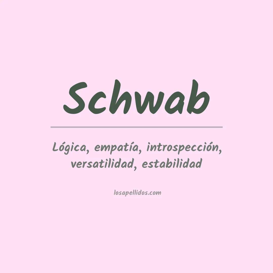 Schwab es un apellido de origen alemán. El significado literal del nombre es "el nadador", y sugiere que sus antepasados eran buenos nadadores o vivían cerca de un río o lago. El término Schwab también se puede usar para describir a alguien que es originario de la región de Suabia en Alemania.