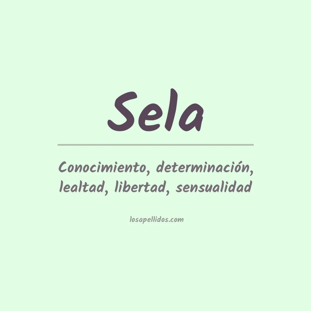 El apellido Sela procede de una antigua palabra hebrea que significa "canción". El apellido también puede ser una variación del nombre Selah, que deriva del verbo hebreo shalah, que significa "detenerse" o "detener el aliento", lo cual sugiere un sentido de reverencia y respeto.