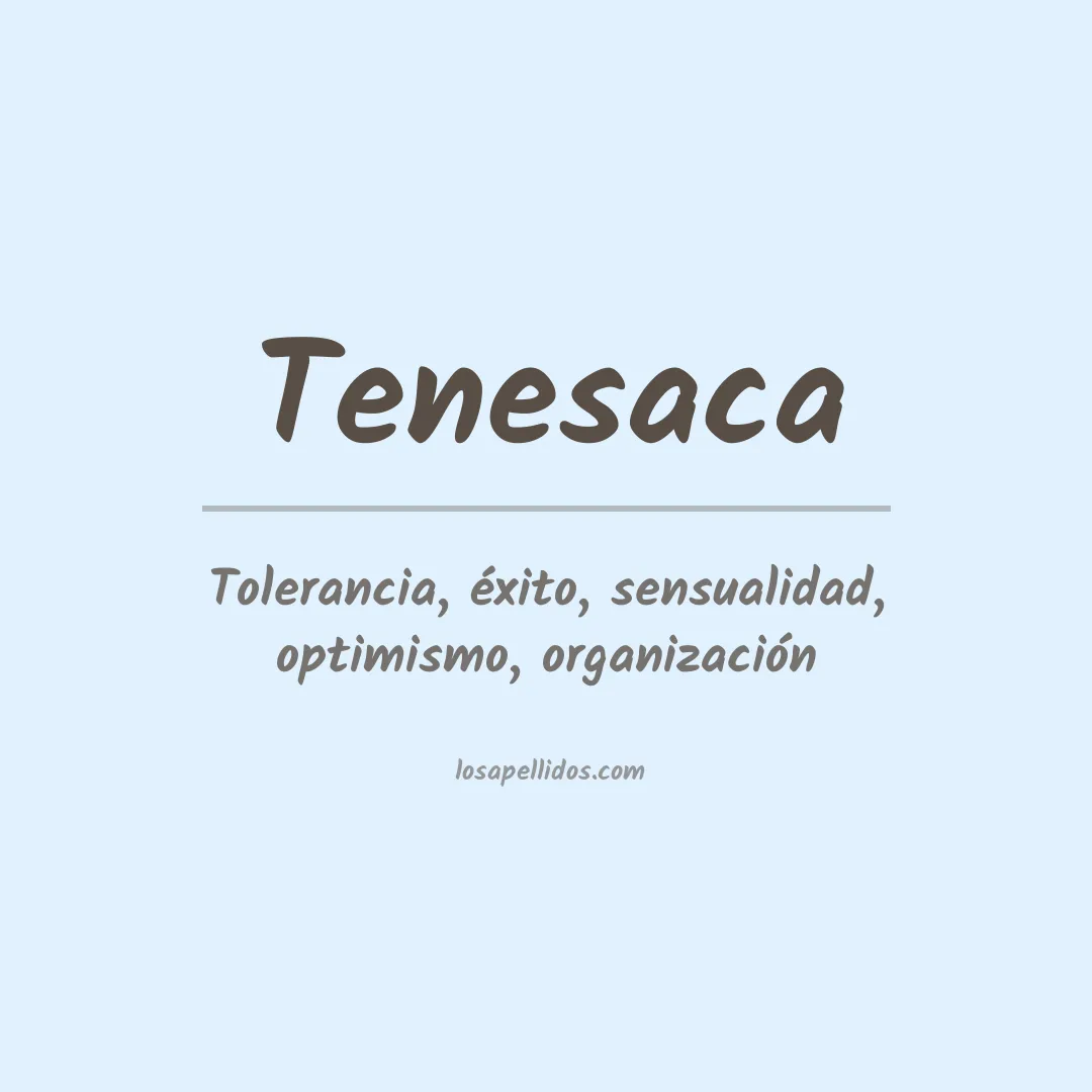 El apellido Tenesaca proviene del quechua y significa "aquí está el lugar". Esta es una expresión muy común en los Andes, utilizada para indicar el lugar de origen de alguien.