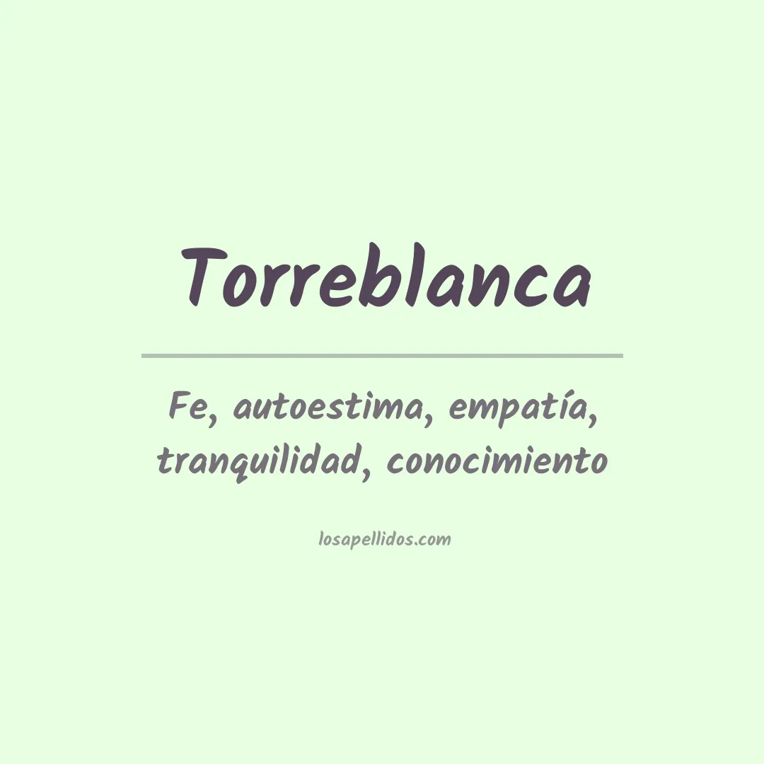 El apellido Torreblanca proviene de los nombres de lugar que significan "torre blanca". Puede ser un nombre ancestral que se originó en una zona con torres blancas, o simplemente una referencia al color blanco. El significado del apellido Torreblanca es literalmente "torre blanca", lo que sugiere un origen geográfico.