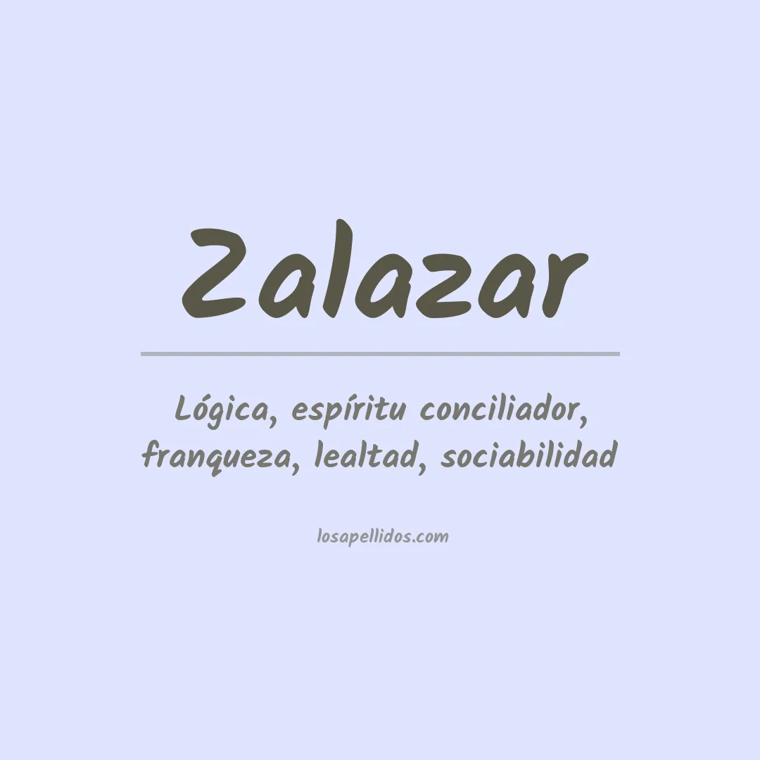 El apellido Zalazar es un topónimo que proviene de la palabra árabe al-salaçar, que significa "el de los salazones". Esto se refiere a aquellos que trabajaban en la producción de conservas y salazones. También se ha sugerido que el nombre puede provenir de la palabra latina salum, que significa "sal". Por lo tanto, el significado del apellido ...Zalazar puede interpretarse como "aquellos relacionados con la sal o los salazones".